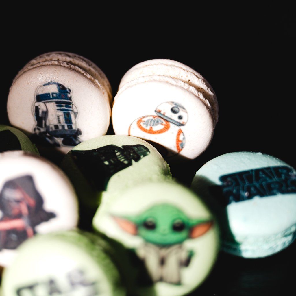 Naše upečeme kolekce dětských makronek STAR WARS poteší nejednu hravou duši. Mix příchutí a barev na kterých vyniknou kultovní postavy ze STAR WARS.